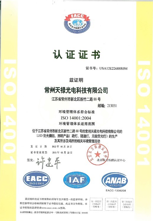 熱烈祝賀公司通過ISO14001:2004環(huán)境管理體系認(rèn)證